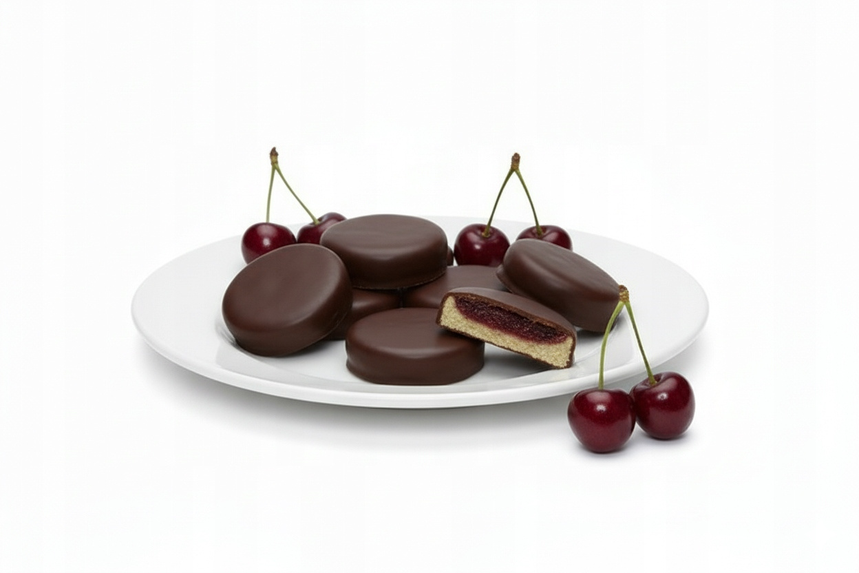 ✓ Wyjątkowe nadzienie: Soczyste, całe wiśnie zanurzone w prawdziwym rumie, które tworzą serce każdej pralinki.